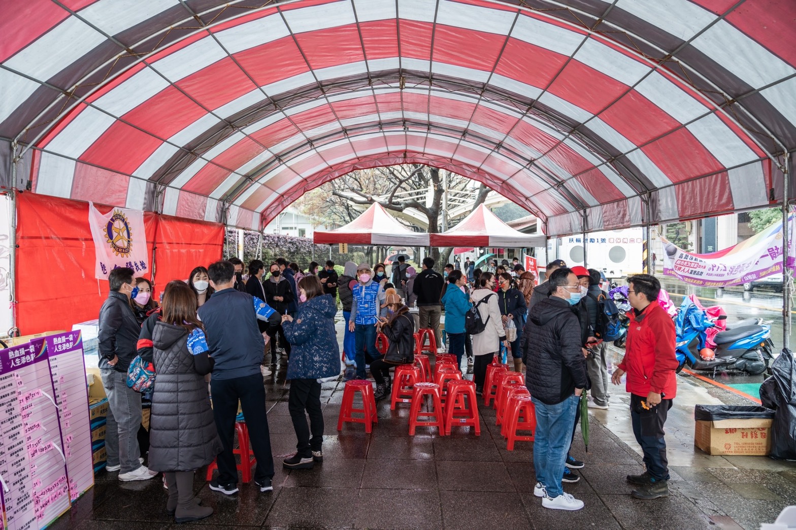 桃園地區由桃園向陽扶輪社主辦的大型捐血活動,不畏疫情及寒流的威脅,二月十九日上午九點在桃園展演中心捐血亭熱烈揭開序幕。