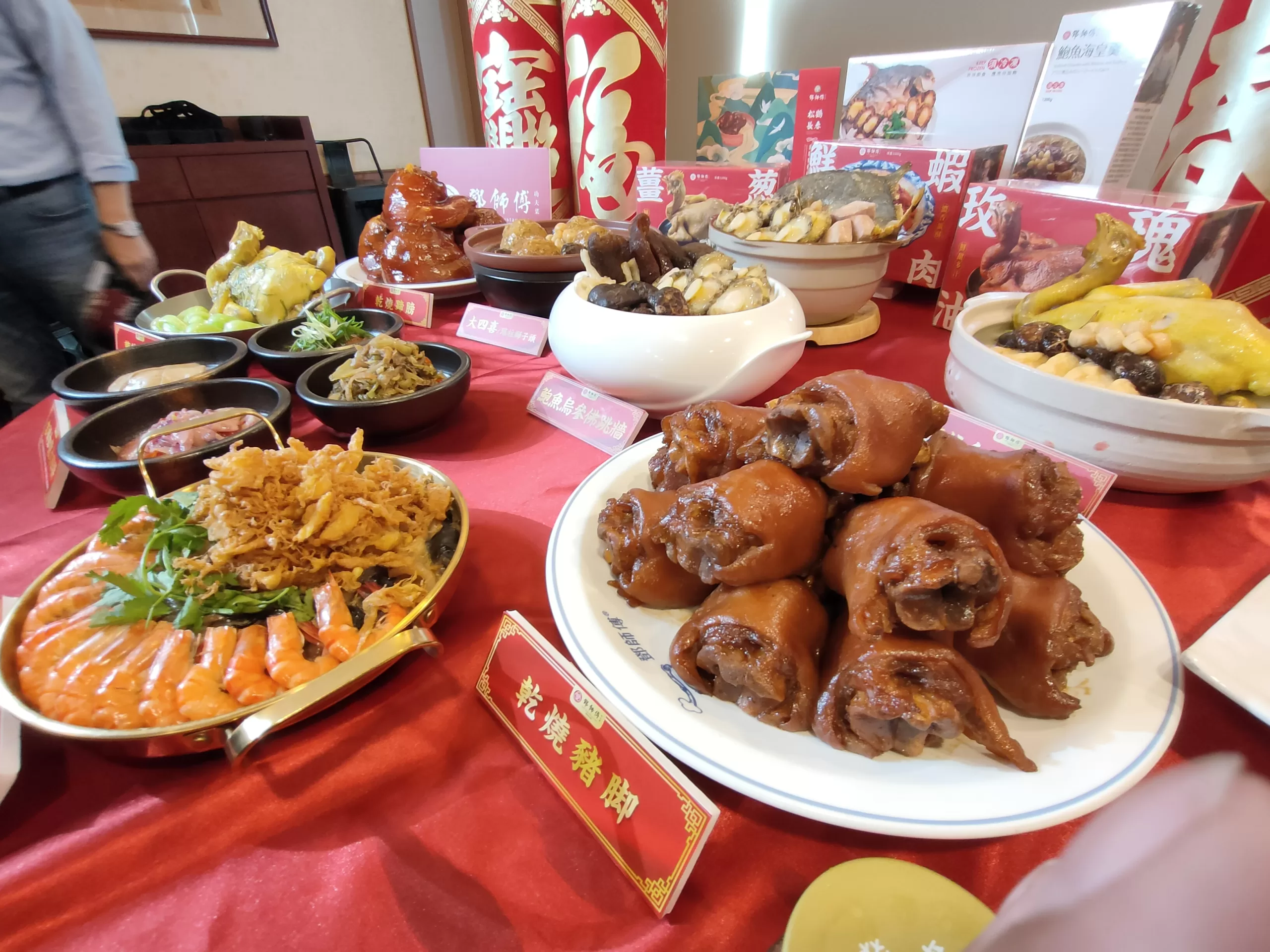 開賣以來,熱銷榜上常客的商品包括深受喜愛的豬腳、蹄膀,以及獨具特色的「大四喜(瑤柱獅子頭)」。這款美味的獅子頭以手工摔打製成,搭配香菇、干貝、大白菜小火煨煮,呈現山珍海味的完美結合。去年熱銷的「蔥㸆鯽魚」再次登場,以炸蒸滷等繁複製程製作,飽滿的魚卵香腴糯綿,深受顧客喜愛。此外,「鮑魚海皇羹」更是宴席羹湯中的必備佳餚。