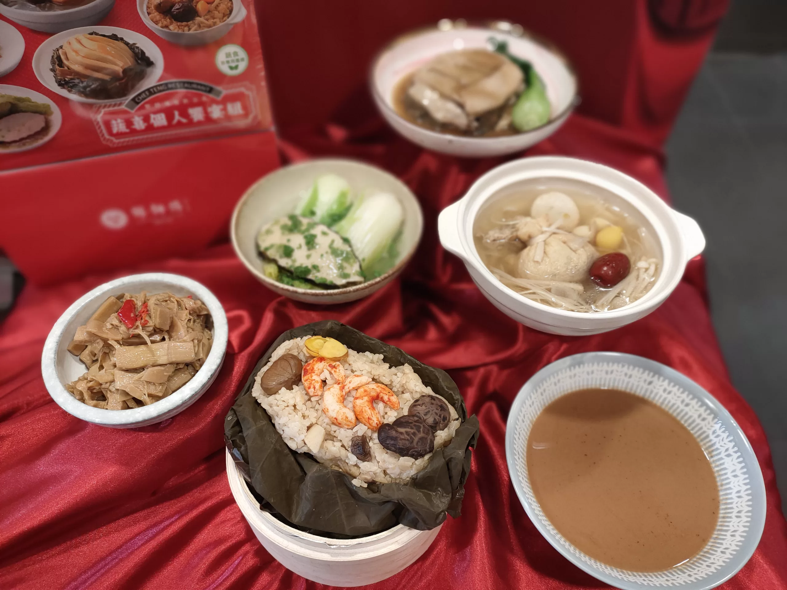 廚藝總監鄧至廷不斷推陳出新,今年特別推出以開胃前菜為主的「吉祥如意大四拼」,包括梅干扣杏鮑菇等傳統手工藝料理,方便消費者在家中複製出一道道美味。此外,傳統油淋雞、鮮蝦西魯肉、水煮牛等辦桌菜餚也不容錯過。今年特別引入宜蘭外海的小卷,搭配烤過後的紫菜、蝦米,製成「頂級小卷紫菜炊飯」,輕鬆在家復熱,為您的圍爐饗宴增添豐富海味。
