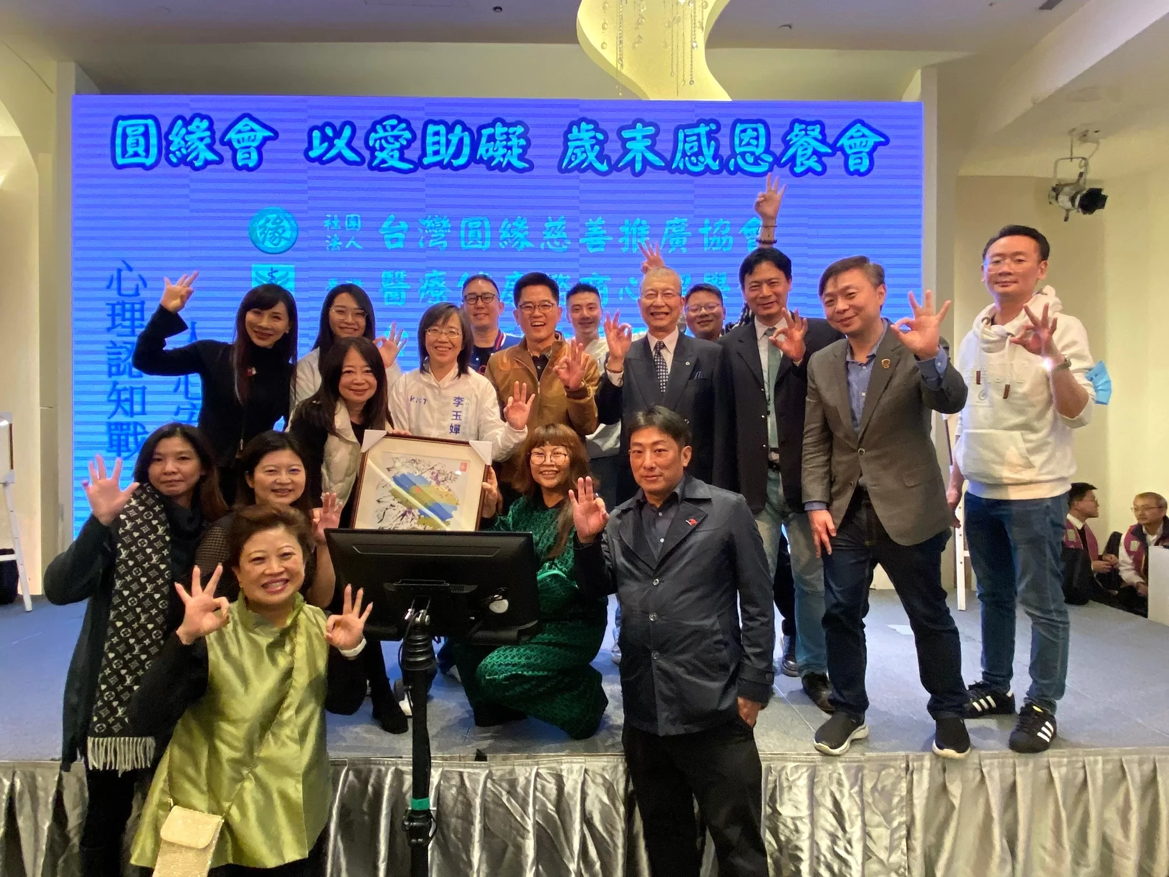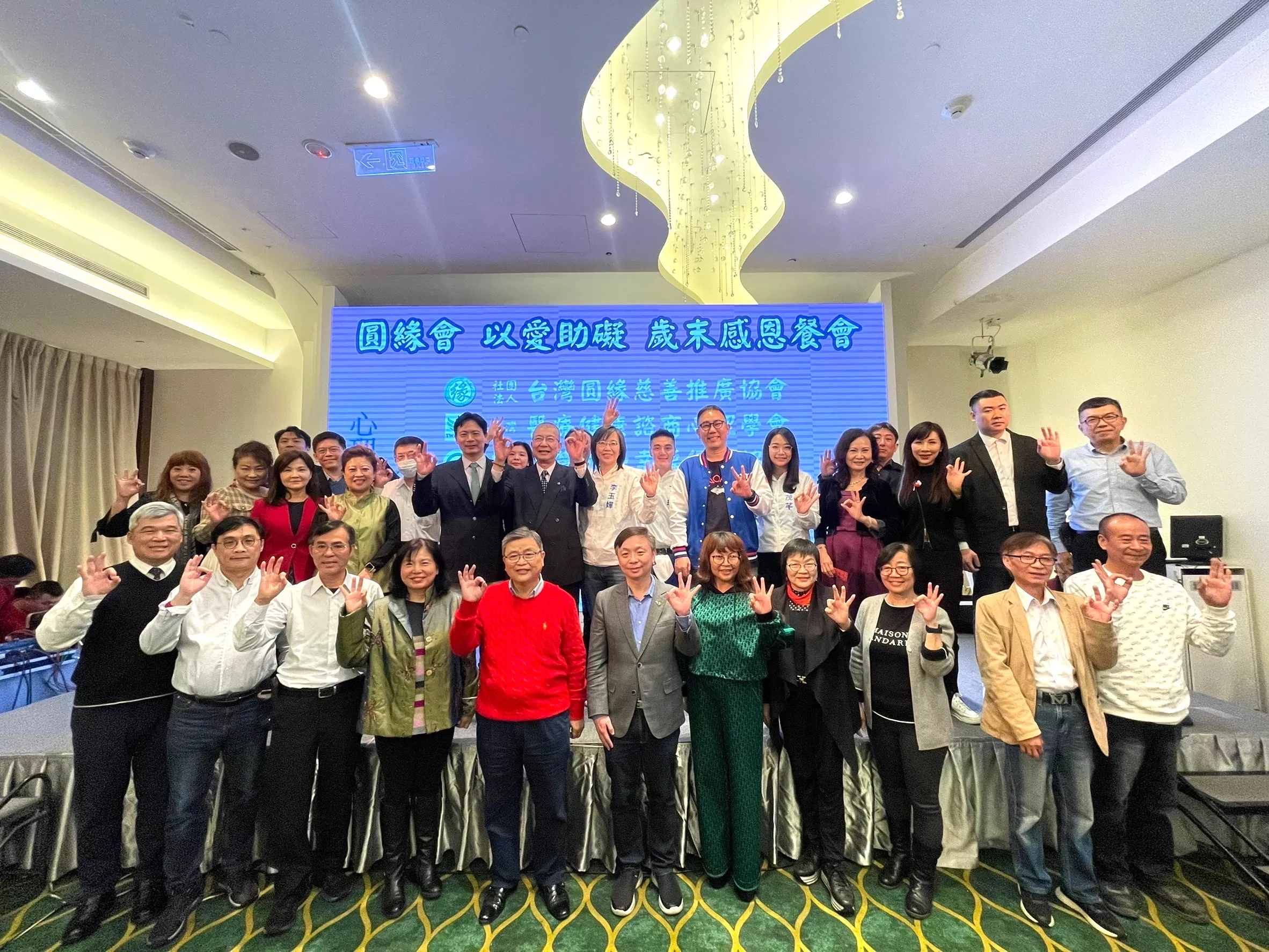 12月28日(四)前天台灣圓緣慈善推廣協會創辦人湯發鉅博士與李玉嬋理事長,圓緣會歲末感恩餐席100多位政商名流齊聚同歡,今年於晶宴會館民權館,搭配「以畫代花」義賣活動,現場推廣以愛助礙的畫作,現場嘉賓熱情踴躍響應,所得皆捐給桃園40多所教養院,歲末年終將近,將小愛化為大愛,持續推廣善意,良機集團張廣博董事長、國民黨秘書長黃健庭、前立法委員吳育仁、國民黨不分區立委候選人李茂芊、丁瑀、陳克威..也都到場表示支持。