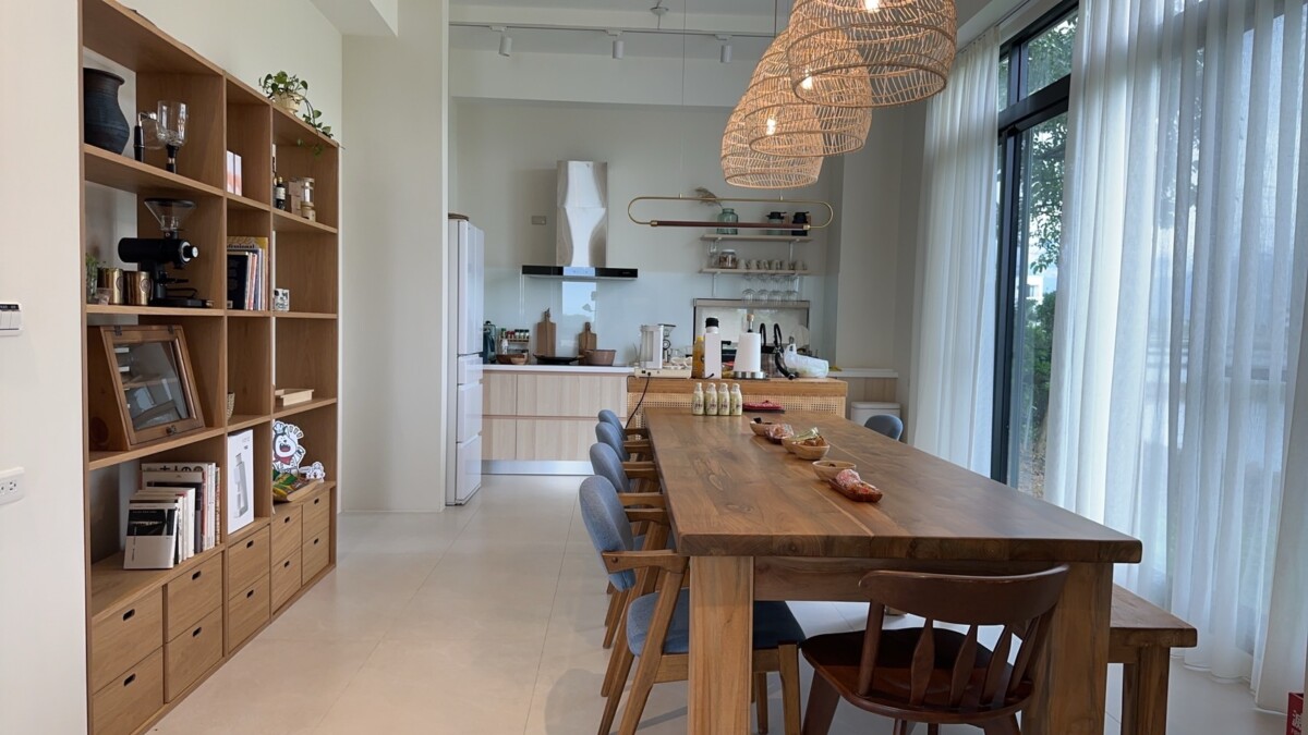 民宿主人小K和其夫婿過去在媒體業任職超過20年,一個是美術編輯、一個是時尚線記者,對美感都有一定程度要求,所有裝潢都是由夫妻倆親手規劃打造,從浴室木台到天花板的木樑,放眼可見的一花一草也都是親自栽種,根本家民宿走日式侘寂風,彷彿到了不同國界,「我們不是想打造一棟豪華別墅,而是希望在宜蘭本來就美好的自然環境中,規劃一個跟自然融合的休憩居所,希望陽光、植物、空氣彼此流動著」,小K說道。