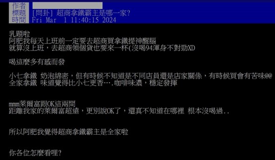 最近PTT鄉民在論壇上熱烈討論,到底哪一家超商販賣的拿鐵最好喝?網友們幾乎一面倒表示「全家」的拿鐵是咖啡霸主!喜歡喝「全家」咖啡的民眾有福了,民眾在3月指定期間來「全家」便利商店拿網購包裹,就能獲得取貨神券,民眾可以用超優惠的價格換購Let’s Cafe經典熱拿鐵、Let’s Cafe單品熱拿鐵、熱狗,好康三選一。另外,民眾如果在3月指定期間,到「momo購物網」下單金額滿399元、1千元,並且選擇「全家」便利商店取件,也可以在「momo購物網」登記兌換minimore抹茶生巧起司塔或金咖哩飯。