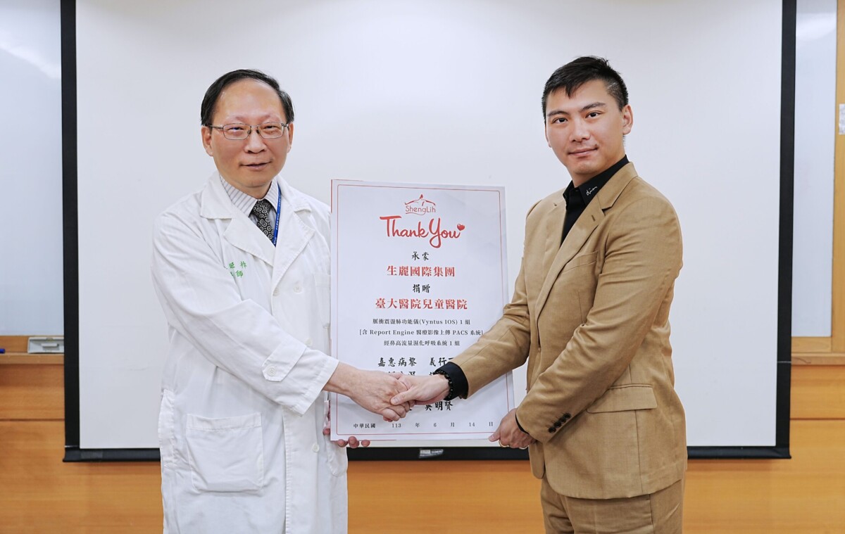 臺大醫院兒童醫院於6月14日舉辦捐贈表彰儀式,感謝生麗國際捐贈脈衝震盪肺功能儀、經鼻高流量濕化呼吸系統等先進醫療儀器,提升診療品質。儀式當天由臺大醫院兒童醫院李旺祚院長親自出席主持,並率領兒童胸腔加護醫學科呂立醫師、吳恩婷醫師、王景甲醫師,以及新生兒科曹伯年醫師、陳倩儀醫師、顏玎安醫師、黃信中醫師一同參與儀式,除了表揚善心企業的大愛,也透過簡報說明儀器的用途與成效,期望將愛心落實在孩童身上,讓揪心的故事不再發生。