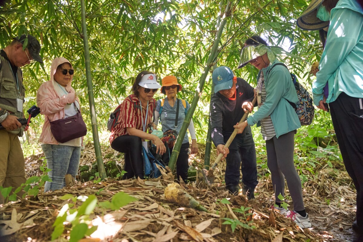 (參與民眾依循筍農教授的採筍技巧,親手挖出鮮嫩竹筍。圖片來源:臺北市政府觀光傳播局)