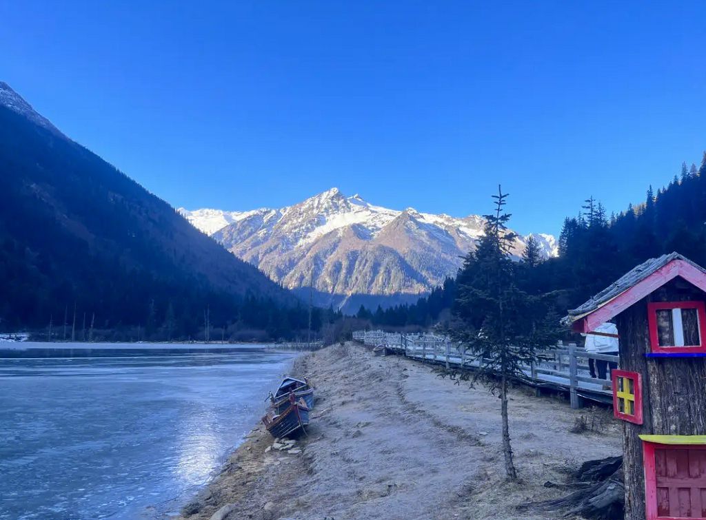 「黑水達古冰川」,海拔近5,000公尺,山頂終年積雪,根據中國官方的資料,達古冰山為全球海拔最低、年紀最輕及面積最大的冰川,遊客可搭乘纜車上山欣賞冰川的奇麗壯闊;「木格措」,距離康定約26公里,被山光、森林環繞的「木格措」,周邊清幽雅靜,水色宜人,徜徉其中,彷彿能感受到天地靈氣,正適合為「稻城亞丁」的行程帶來完美的尾聲。