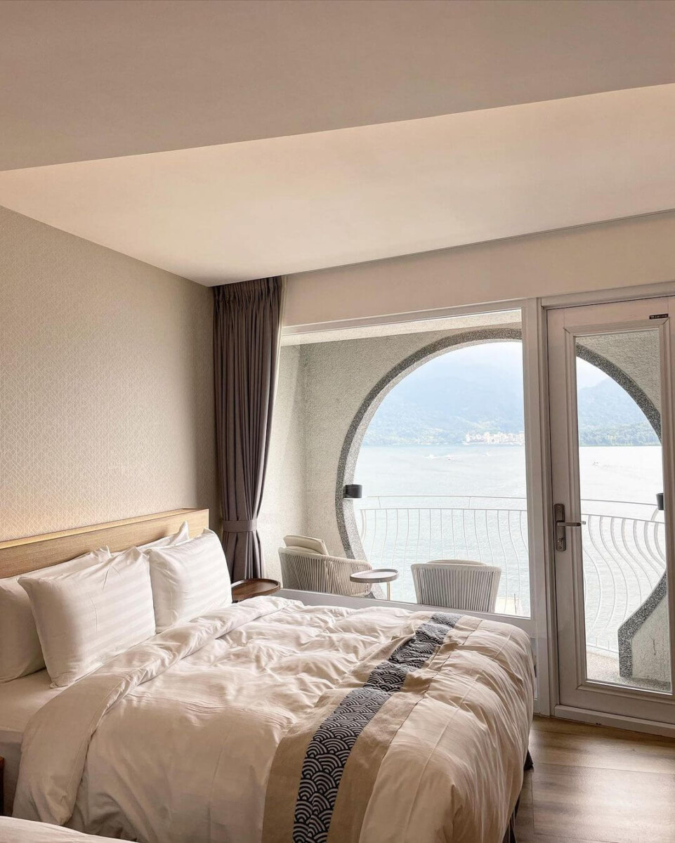 位於朝霧乘船碼頭徒步五分鐘內的民宿「盒木 Hermon」坐擁日月潭第一排的美景,空間內結合了咖啡廳和民宿,可以在此用餐,也可以到此住宿。客房有分別位於一樓、二樓的湖景雙人、四人房可以預訂,預定開放的日期會公布於民宿的Instagram專頁,如果想要入住,記得要線上預約,以免向隅。