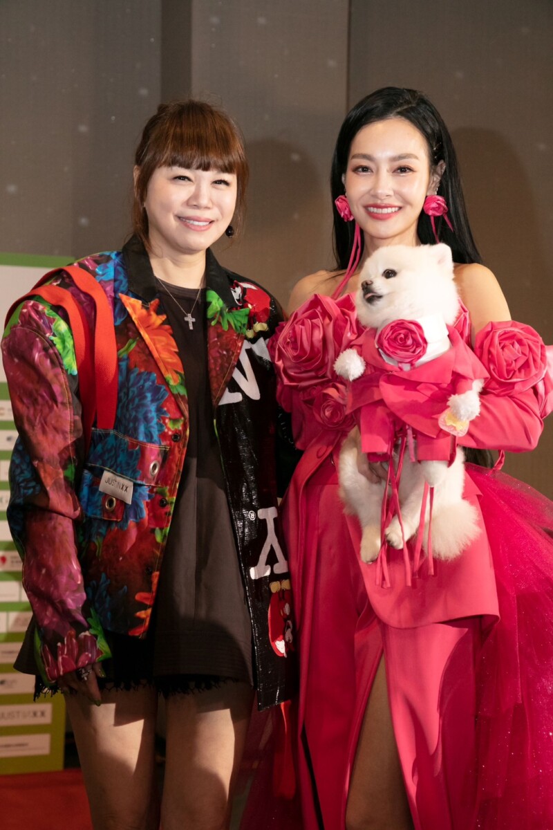 巴黎奧運服裝指定設計師周裕穎個人品牌 JUST IN XX攜手時尚CEO溫筱鴻(左)在禮客舉辦第一屆「臺北萌寵時裝週」,邀請同樣熱愛毛孩的王思佳(右)擔任壓軸走秀嘉賓。