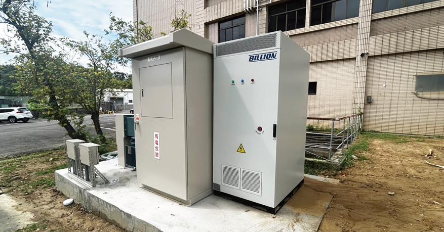 隨著工商業用電成本升高與電網調度需求日益明確,表後儲能與能源整合系統已成為企業導入綠能的關鍵解方。本案由盛齊綠能主導系統設計與整合,於高雄仁武中華電信學院完成「中華電信局舍自建光充儲三合一系統PoC建置案」,整合太陽能、儲能與充電樁等設施,打造可商轉的微電網示範場域。本案共建置太陽光電容量達103.24 kWp,核心設備採用Billion品牌MIT綠能產品,包含Giga BNI 40-60K工商光電變流器、Fusio One 100 kW/215 kWh模組化儲能機櫃、7 kW AC與120 kW DC電動車充電設備,免大規模施工、適用場域彈性高。
