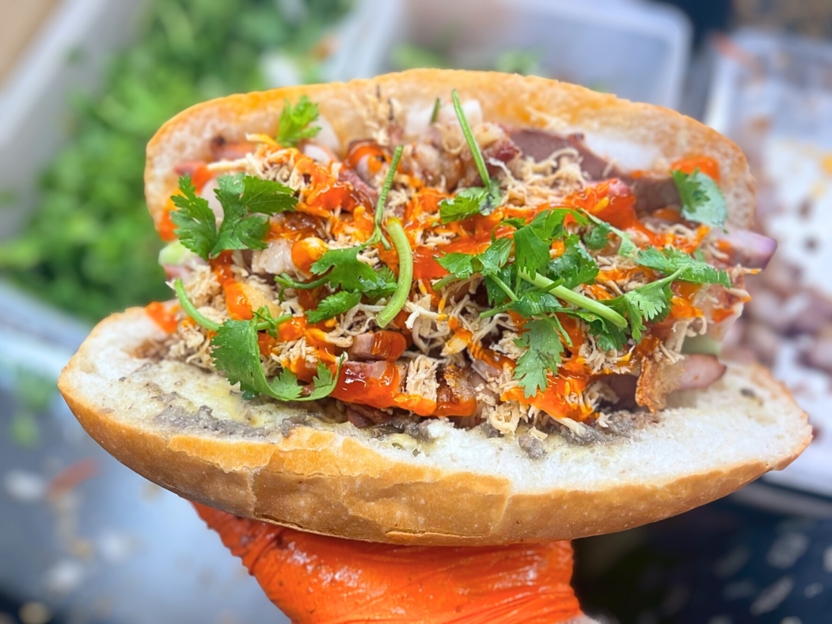 店主夫妻中的太太是來自越南的華僑,自小就愛吃越南麵包與越南涼拌米線。移居台灣後,她發現台灣市面上的越式麵包往往餡料不足、口感單薄,缺乏越南街邊小吃的靈魂。於是他們決定打造一間能夠還原家鄉風味、結合台灣人口味的新莊在地小吃店。主打內餡加倍、每日新鮮現烤肉料,成為眾多網友熱推的新莊平價異國料理選擇。