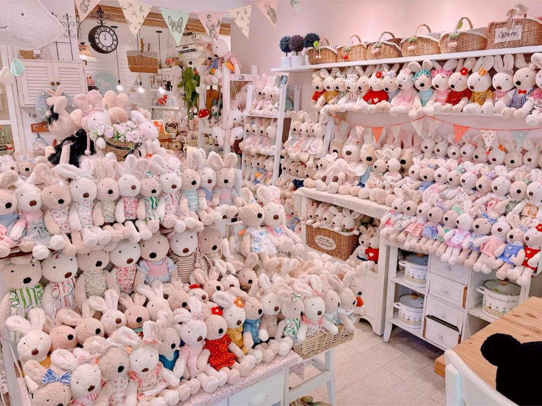 是的,店內所有法國兔商品皆來自日本插畫家戶崎尚美的角色系列,包含各式布偶、娃娃、吊飾與周邊。有些款式是台灣限定,僅在這裡才能入手。