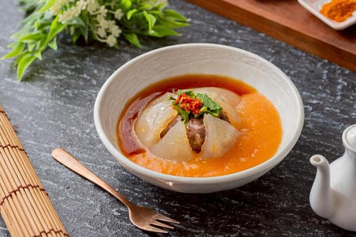 而湯頭更是一門時間的藝術,風味也是一場細節的修行。撲克專業麵線的湯頭不靠速成,而是以職人精神層層堆疊。湯底以柴魚高湯為基礎,經過數小時慢火熬製,融合海鮮的鮮與大骨的香味厚度,再以天然調味精準平衡鹹香。這不只是食譜,而是一場「香氣的追尋」。創辦人常說:「每一次熬湯,就像在做一件琉璃作品——只要時間差一點、火候錯一分,結果就完全不同。」這份對時間與比例的尊重,也成就了撲克獨有的味道——濃郁卻不鹹膩、滑順卻層次分明。在這裡,湯不只是湯,而是能被記住的溫度。
