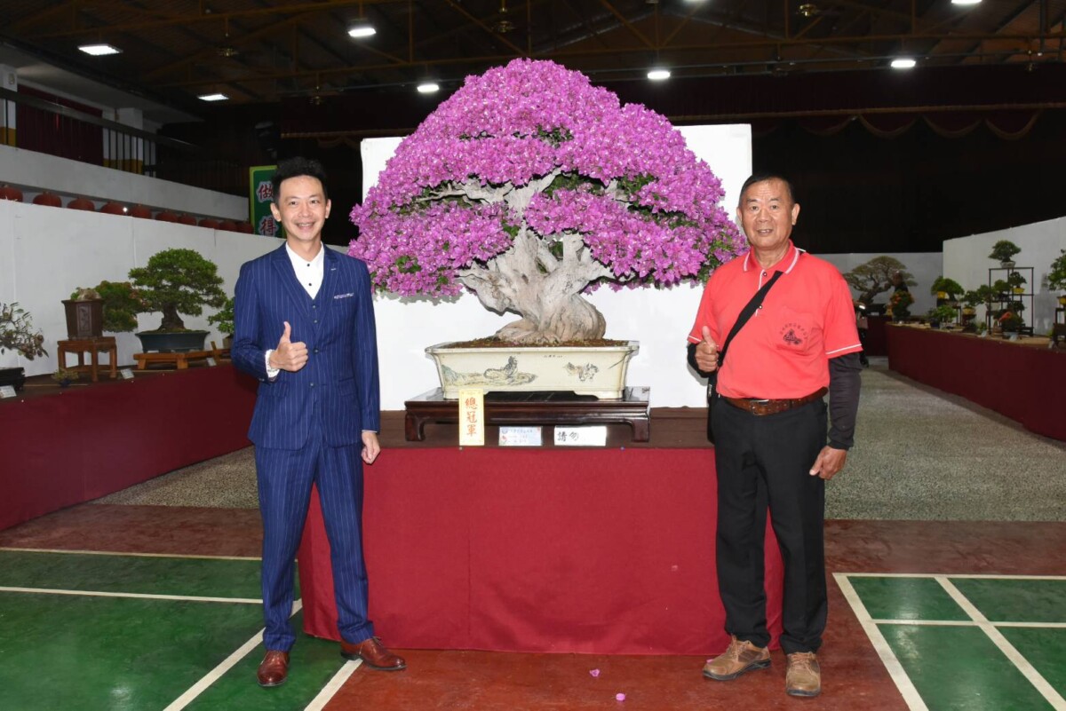 本屆展出作品規模再創新高,共展出25種樹種、95件精選作品與110棵盆栽,數量與質量皆勝往年。其中,九重葛作品以鮮明色彩與繁盛姿態成為全場焦點,達42棵之多,占比近三分之一,充分展現其在台灣園藝界的高人氣與創作潛力。