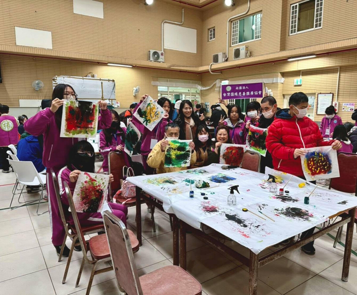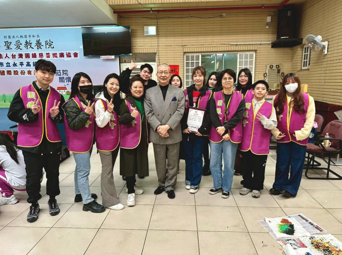 寒冬送暖,愛不止息!台灣圓緣慈善推廣協會發起「百人一日快閃志工服務」,串聯皇順國際股份有限公司與新北市永平高級中學(附設國中部),共號召近百位師生與企業志工,齊聚聖愛教養院。透過協會長年推動的「無筆彩繪」藝術互動,志工們與心智發展遲緩的老憨兒共同創作,用行動實踐公益初心,傳遞跨越障別的尊重與溫暖。