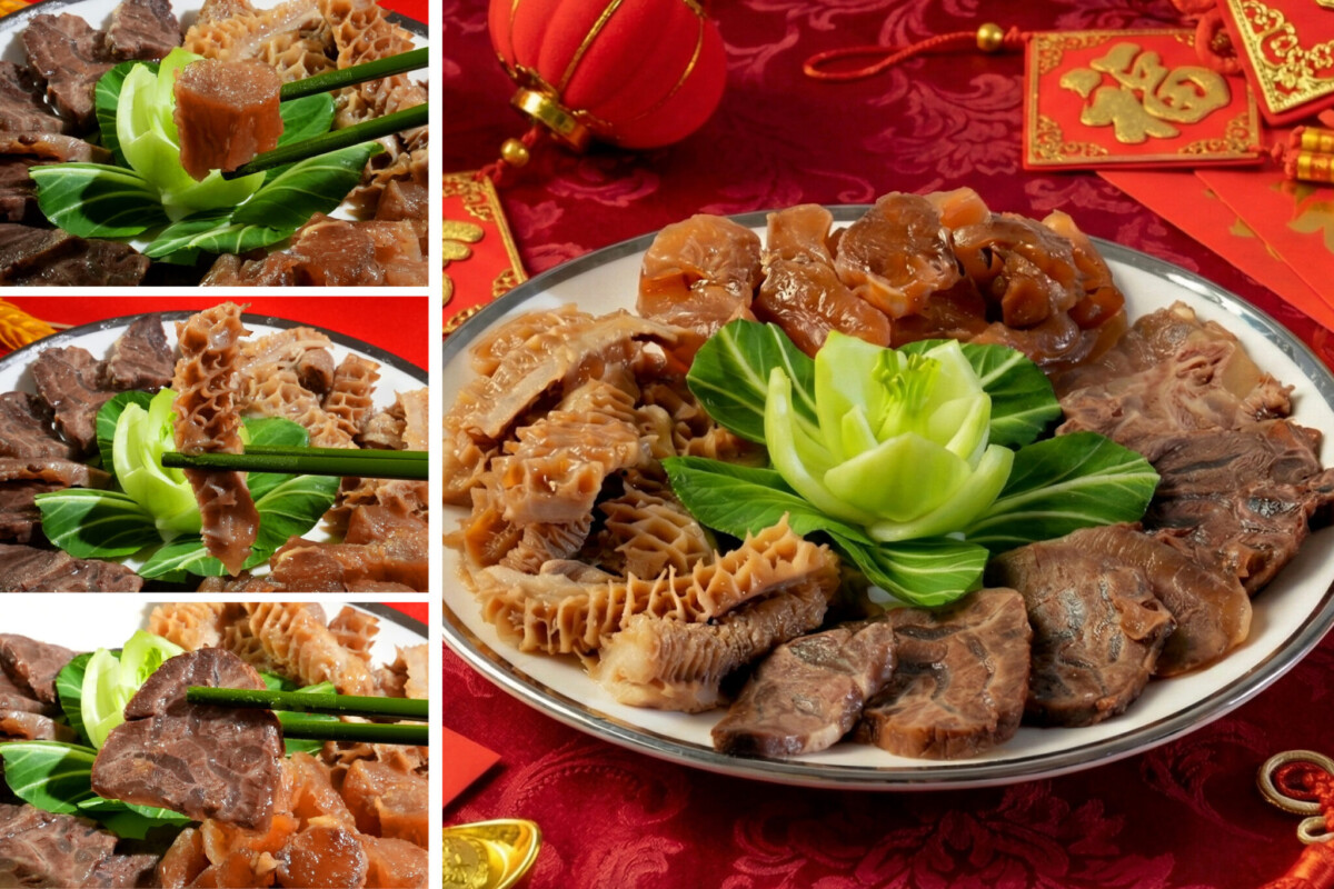 - 香魯牛三寶: 晶華身為牛肉麵節的常勝軍,其「牛三寶」(牛腱、牛筋、牛肚)更是滷味界的藝術品。老滷汁醇厚而不死鹹,牛筋軟糯透亮,牛肚吸飽汁液,是圍爐最體面的冷盤或熱食首選。